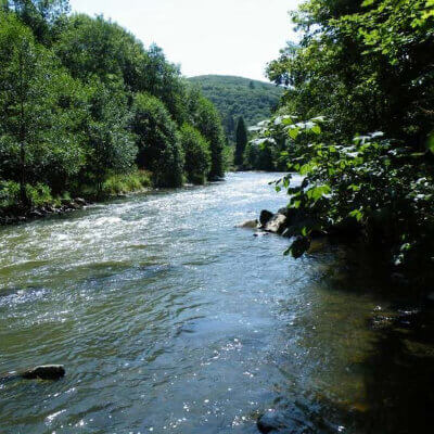 À 5 minutes à pieds de l'atelier, tout près de la rivière.